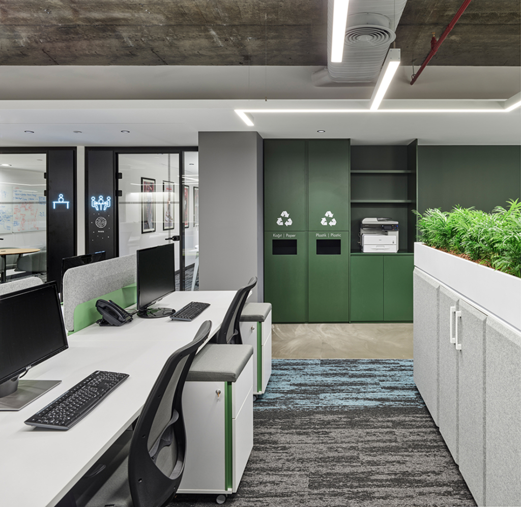In conclusion, we believe we have successfully transformed the existing space’s disadvantages into an open, spacious, and well-lit office where employees can work happily. By using materials with different textures and rhythmic arrangements, we’ve created an office space that appeals not only to the eye but also to the senses, emphasizing its tactile aspect.